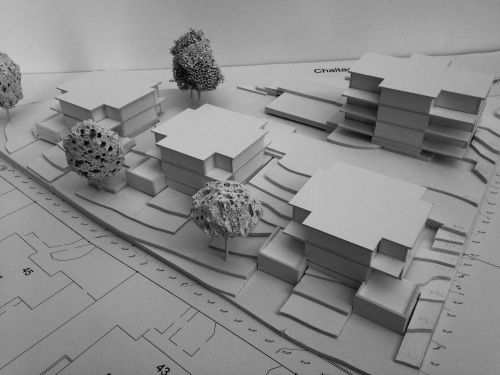 Stellvertretend für zahlreiche Projektstudien für diverse Privat- und Geschäftskunden zeigen wir anhand dieses Beispiels unsere Arbeitsweise. In einer ersten Phase werden anhand einfacher Gebäudekörper mögliche Überbauungsvarianten geprüft. Dabei spielen städtebauliche Überlegungen sowie baurechtliche Themen eine zentrale Rolle. Trotz 3D-Planung sind Kartonmodelle in dieser frühen Phase sehr beliebt, da sie einen guten Eindruck der Bauvolumen vermitteln.
