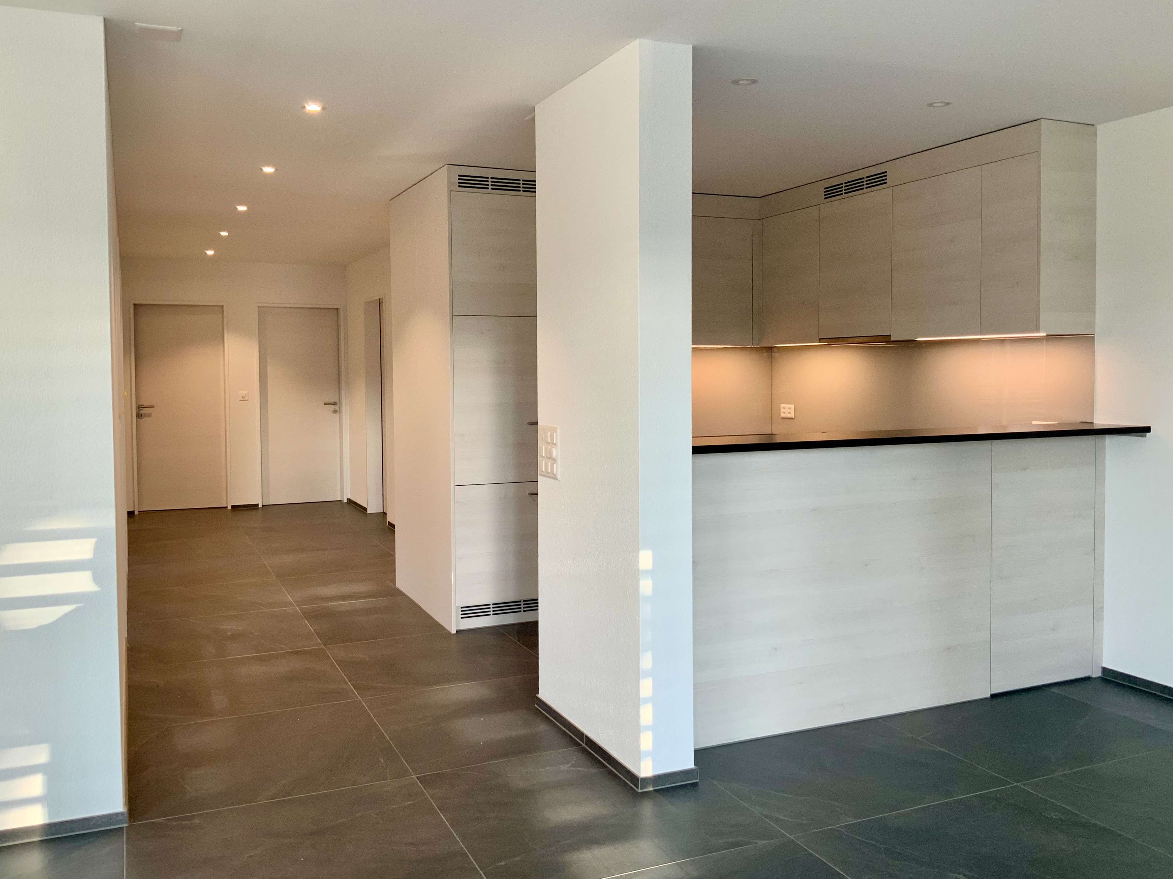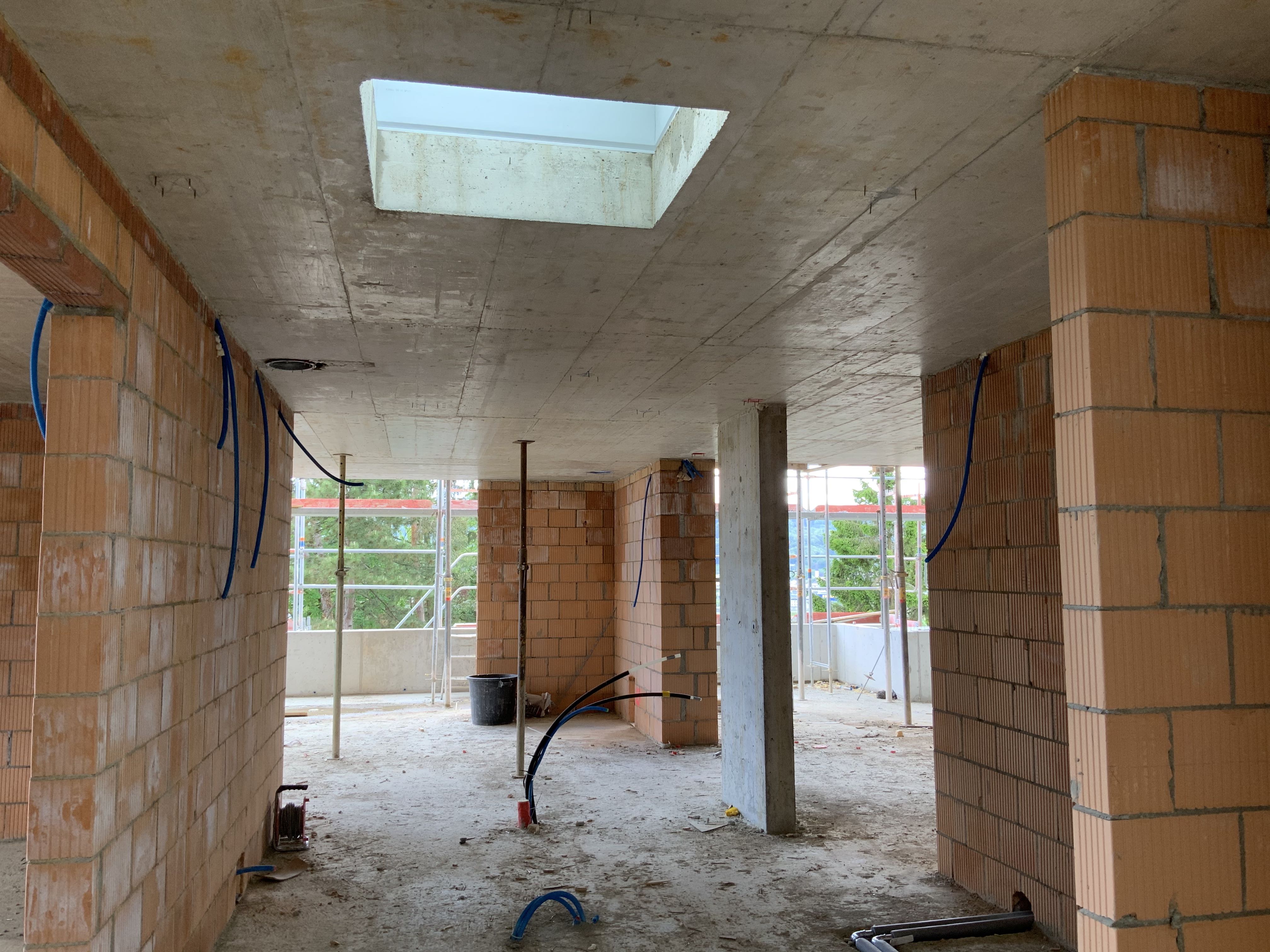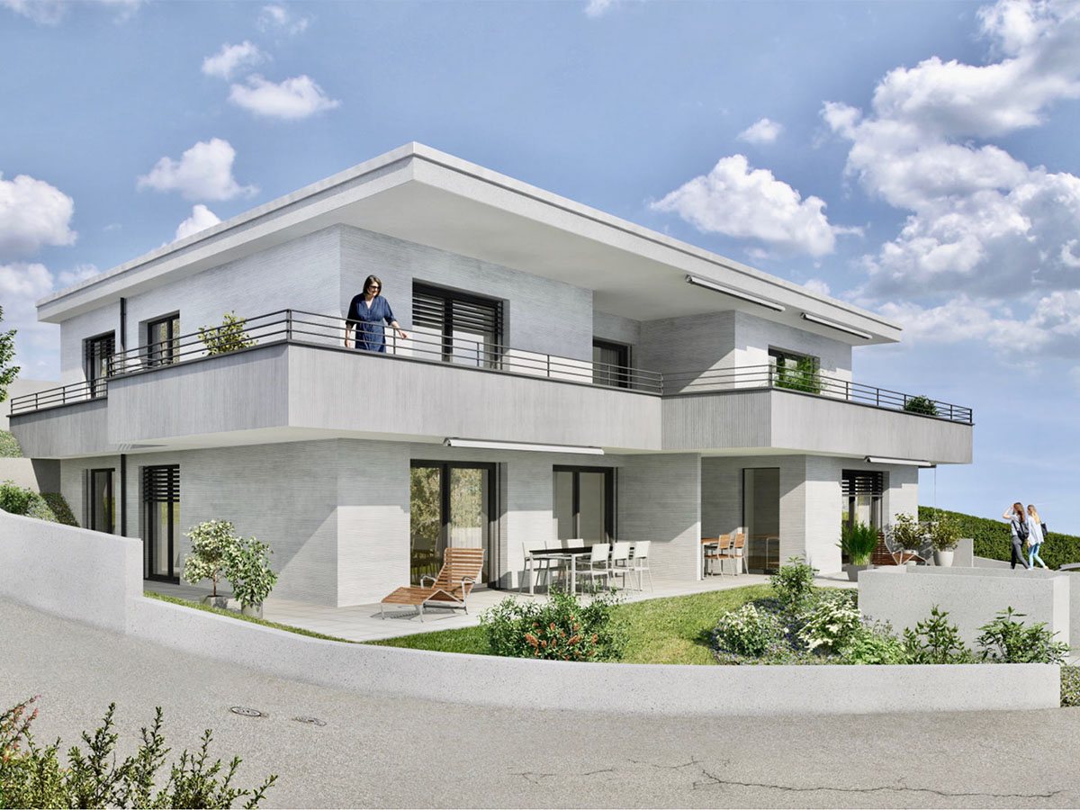 Für eine private Bauherrschaft projektieren wir einen Ersatzneubau in Hanglage mit drei Wohnungseinheiten und gemeinsamer Tiefgarage. Die Hauptvorgabe war es, eine grosse Attikawohnung mit rundum begehbarer Aussenfläche, selbständigem Hauszugang sowie direktem Liftzugang für die Eigentümerschaft zu planen. Im Sockelgeschoss haben wir zwei Mietwohnungen mit grosszügigen Sitzplätzen und grossen Fensterfronten angeordnet. Eine Herausforderung während des Bauprozesses ist, die 50-jährige Buche am Parzellenrand zu schützen und in die Umgebungsgestaltung zu integrieren.