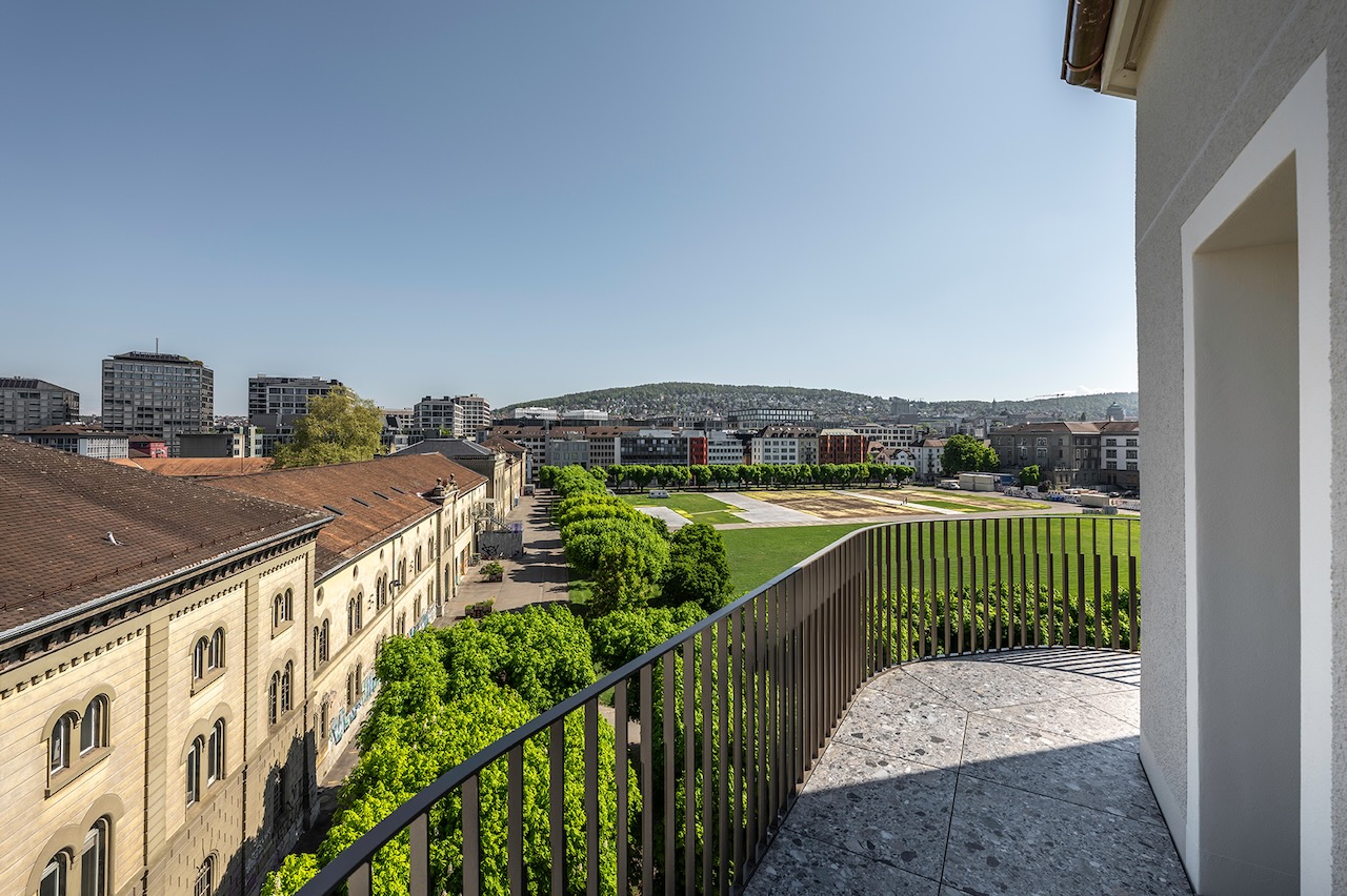 Das Eckgebäude an der Zeughaus- und Rotwandstrasse bildet den städtebaulichen Übergang der Blockrandbebauung zum Grün- sowie Freiraum des Kasernenareals.